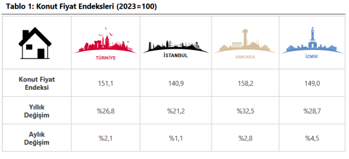 Merkez Bankası 2024 yılı Ekim ayında Konut Fiyat Endeksi’ni açıkladı. Endeks bir önceki yılın aynı ayına göre...