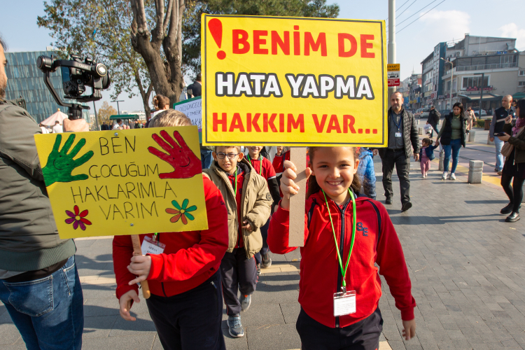 BURSA (İGFA) – 20 Kasım 1989 yılından bu yana Birleşmiş Milletler tarafından dünya genelinde çocukların karşı karşıya kaldığı hak ihlallerine dikkat çekmek amacıyla kutlanan Dünya Çocuk Hakları Günü dolayısıyla Bursa Büyükşehir Belediyesi ve Bursa Kent Konseyi tarafından ‘Dünya Çocuk Hakları Festivali’ düzenlendi. Kent Meydanı Atatürk Heykeli önünde buluşan yüzlerce anaokulu, ilkokul ve ortaokul öğrencisi, ellerinde çocuk haklarına dikkat çeken döviz ve pankartlarla Merinos Atatürk Kongre Kültür Merkezi’ne yürüdü.