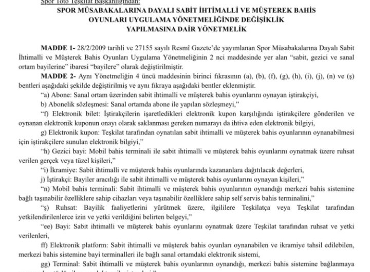 Yasa dışı bahis konularının gündemden düşmediği günümüzde Spor Toto Teşkilat Başkanlığı, bahis oyunları yönetmeliğinde değişikliğe gitti. Resmi...