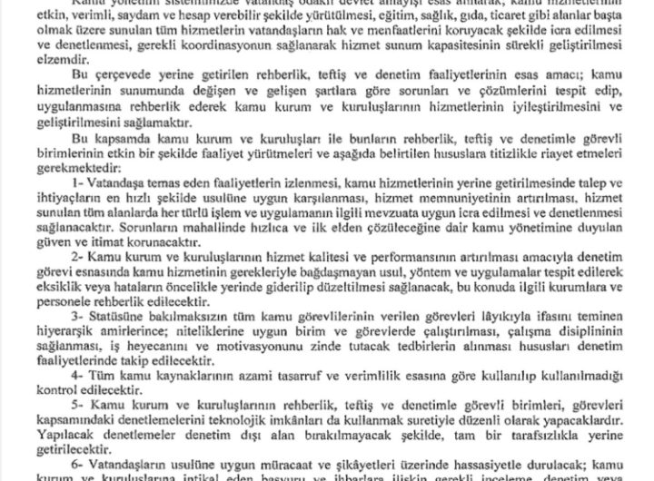 Cumhurbaşkanı ve AKP Genel Başkanı Recep Tayyip Erdoğan’ın imzası ile “Rehberlik, Teftiş ve Denetim Faaliyetlerinin Düzenli ve...