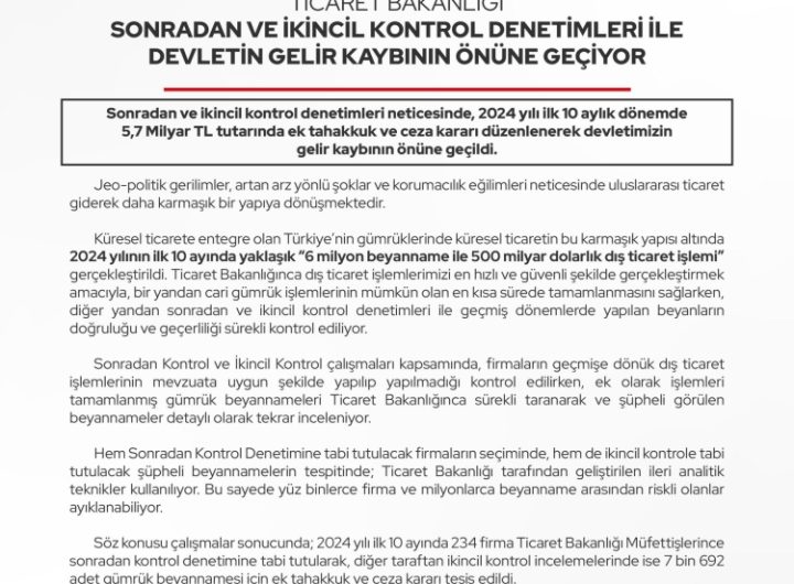 Ticaret Bakanlığı sonradan ve ikincil kontrol denetimleri ile devletin gelir kaybının önüne geçiyor. ANKARA (İGFA) – Ticaret...