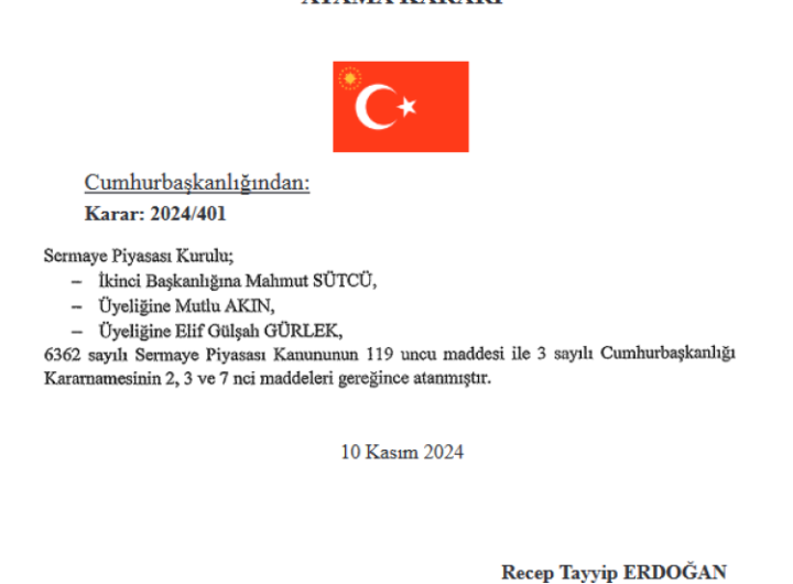 Sermaye Piyasası Kurulu ikicnci başkanlığına Mahmut Sütcü, üyeliklerine ise Mutlu Akın ve Elif Gülşah Gürlek atandı. ANKARA...