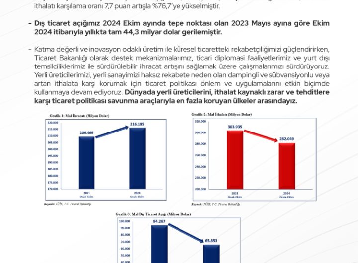 Ticaret Bakanı Ömer Bolat, dış ticaret ve cari işlemlerdeki olumlu gelişmelerin ekimde de devam ettiğine işaret ederek,...
