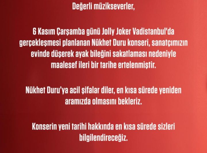 Yaptıkları iş birlikleriyle müzikseverlerin ilgisini çeken ünlü sanatçı Nükhet Duru’nun 6 Kasım Çarşamba akşamı İstanbul Vadi Jolly...