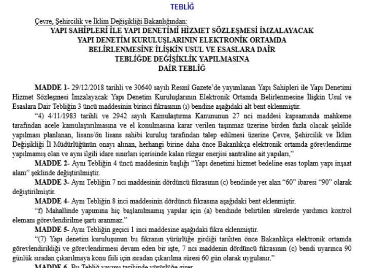 Çevre, Şehircilik ve İklim Değişikliği Bakanlığı, özellikle küçük metrajlı işlerin denetimini üstlenmek istemeyen yapı denetim kuruluşlarına uygulanan...