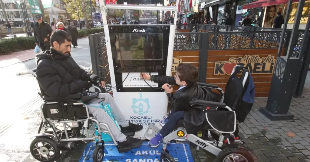 Engelli bireylerin çekinmeden şehir merkezine gelmelerine imkân sunan akülü şarj istasyonları, engelli vatandaşların yağmur ve güneşin etkilerden korurken, üstü kapalı olan istasyonlar aynı anda 3 engelli aracın şarj olmasını sağlıyor. Hızlı şarj özelliğine sahip ve tekerlekli sandalye aküsünün amper seçiminin de yapılabildiği şarj istasyonları engelli bireylerin hiçbir ücret ödemeden akülü araçlarını şarj edebilecekleri, sosyal alanlarda daha fazla zaman harcamalarına imkân tanıyor. Araçlarını şarj eden vatandaşlar ayrıca şarj istasyonuna kurulan LCD ekrandan da bilgilendirme görselleri ve tanıtım videolarını izleyerek bilgi sahibi oluyor.