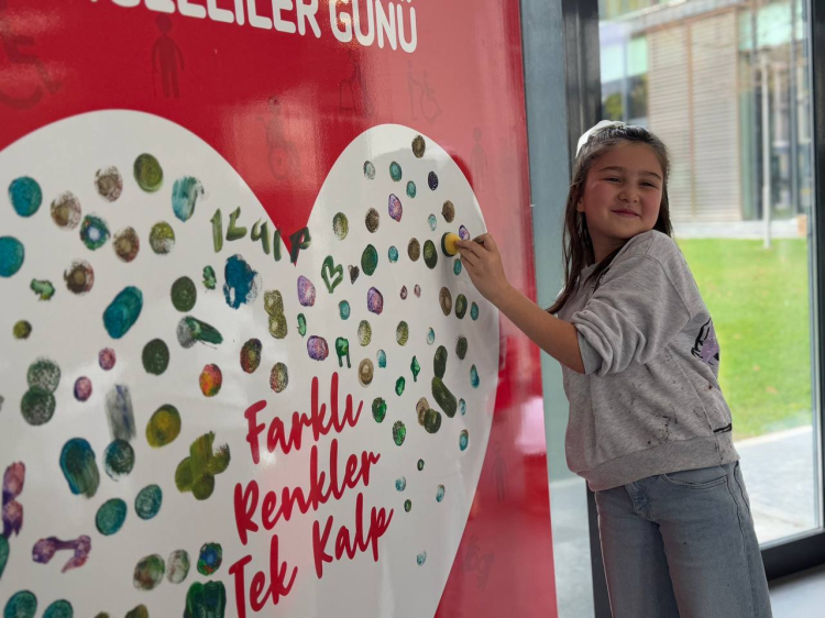 Gün boyu birlikte vakit geçiren minik katılımcılar, mutfak atölyesinde kek yaptı, müzik atölyesinde şarkılar söyledi ve doku tasarım atölyesinde yaratıcı çalışmalar yapma fırsatı buldu. Her bir çocuk, farklı renklerdeki boyalarla kalp figürleri üzerinde baskı yaparak, toplumsal farkındalık ve birliktelik mesajı verdi.