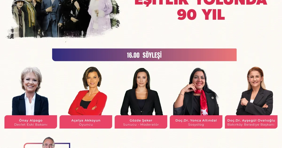 Bakırköy Belediyesi, her alanda eşitliğin sağlanması ve bu bilincin artırılması için çalışmalarını sürdürüyor. Türk kadınına seçme ve seçilme hakkının tanınmasının 90.yılı, Bakırköy’de anlamlı bir söyleşi ile taçlanacak. Söyleşiye Bakırköy’ün ilk kadın Belediye Başkanı Doç. Dr. Ayşegül Ovalıoğlu, Devlet Eski Bakanı Önay Alpago, Oyuncu Açelya Akkoyun, Sunucu-Moderatör Gözde Şeker ve Sosyolog Doç. Dr. Yonca Altındal konuşmacı olarak katılacak. Alanında uzman kadınların deneyimlerini aktararak eşit bir Türkiye için ilham kaynağı olacağı söyleşinin ardından, Sunay Akın bir anlatım gerçekleştirecek. Söyleşi programı, 8 Aralık Pazar günü saat 16.00’da Leyla Gencer Opera ve Sanat Merkezi’nde gerçekleştirilecek.