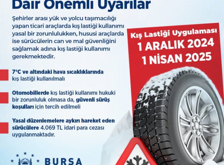 BURSA (İGFA) – Şehirler arası yük ve yolcu taşımacılığı yapan ticari araçlarda kış lastiği kullanımı yasal bir...