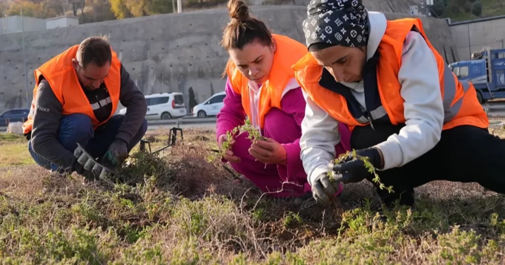 İZMİR (İGFA) – İzmir Büyükşehir Belediyesi, iklim kriziyle mücadele çalışmaları kapsamında su kaynaklarının verimli kullanılması için kentin yeşil örtüsünde yeni bir dönem başlattı. Yeşil alanlarda su verimliliği sağlayabilmek için akıllı sulama yöntemlerini uygulamaya başlayan Park ve Bahçeler Dairesi Başkanlığı, peyzaj çalışmalarında da yeni çim tohumlarını ekmeye başladı.