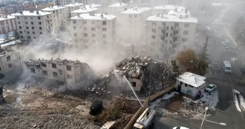 İş sağlığı ve güvenliği önlemlerinin alınmasıyla başlayan çalışmada iş makineleri tarafından 4 blok yerle bir edildi.