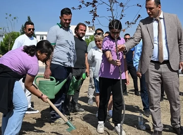 İZMİR (İGFA) – Üniversite öğrencilerinin katılımıyla gerçekleşen etkinlikte zeytin, ceviz, badem, akasya ve çınar fidanları toprakla buluşturuldu....
