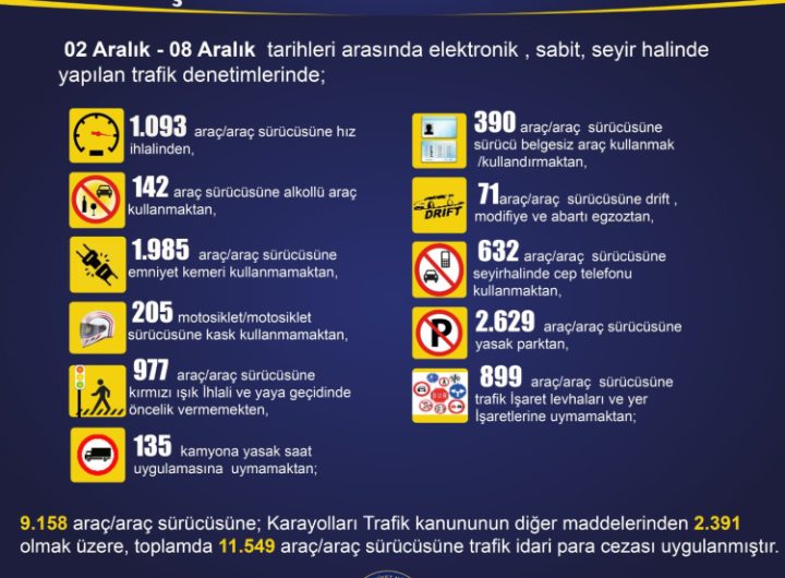 BURSA (İGFA) – Bursa İl Emniyet Müdürlüğü, 2- 8 Aralık tarihler arasında elektronik, sabit, seyir halinde gerçekleştirilen...