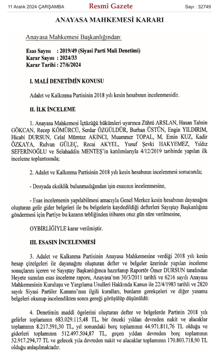 ANKARA (İGFA) – Ekonomi ve Kalkınma Partisi, Anavatan Partisi, Adalet Birlik Partisi, Hür Dava Partisi, Kürdistan Özgürlük Partisi, İşçinin Kendi Partisi, Vatan Partisi, Adalet ve Kalkınma Partisi, Halkların Demokratik Partisi’nin olduğu 9 siyasi partinin çeşitli yıllarına ilişkin mali denetimleri bugünkü Resmi Gazete’de yayımlandı.