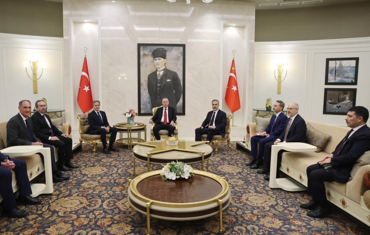 Cumhurbaşkanı Recep Tayyip Erdoğan, ABD Dışişleri Bakanı Antony Blinken’ı kabul etti. Kabulde Türkiye ile Amerika Birleşik Devletleri ikili ilişkileri, Suriye’deki son gelişmeler, küresel ve bölgesel konular ele alındı.