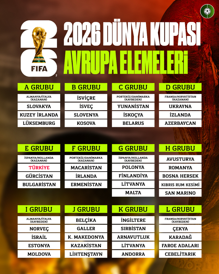 2026 Dünya Kupası Avrupa Elemeleri’nde gruplar belli oldu.