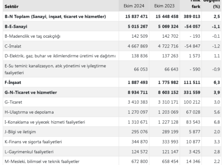 ANKARA (İGFA) – Türkiye İstatistik Kurumu (TÜİK), ekim ayına ilişkin ücretli çalışan istatistiklerini yayımladı. Buna göre, sanayi,...