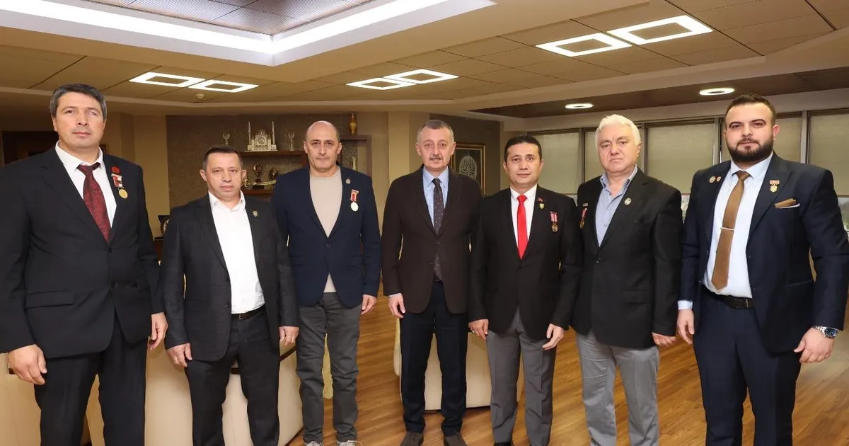 KOCELİ (İGFA) – Kocaeli Büyükşehir Belediye Başkanı Doç. Dr. Tahir Büyükakın, Gebze Trabzonlular Derneği, Kocaeli Ağrılılar Derneği, Türkiye Harp Malulü Gaziler, Şehit, Dul ve Yetimler Derneği Gebze Şubesi ve Ufka Yolculuk İl Koordinatörlüğü temsilcilerini makamında konuk etti. Başkan Büyükakın, görüşmelerde son dönemde yaşanan ulusal ve uluslararası gelişmeler hakkında değerlendirmelerde bulundu.