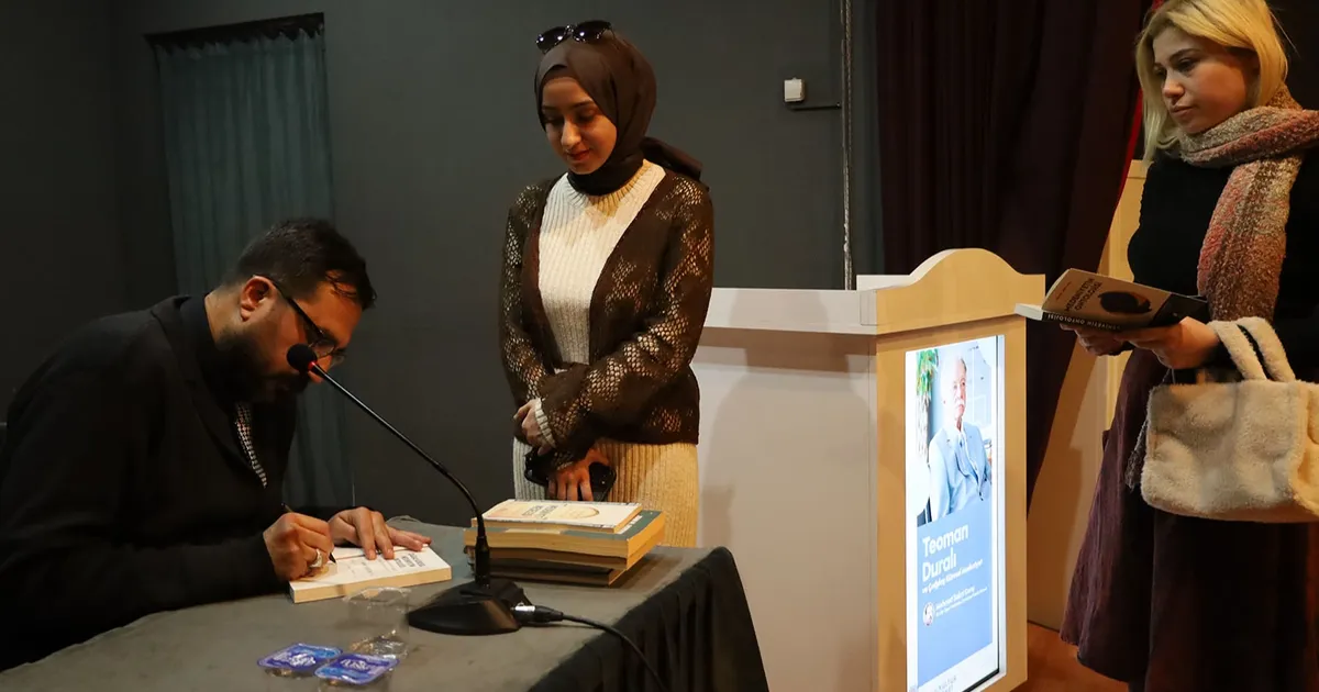 Teoman Duralı’yı tanıtan ve felsefesini yorumlayan Dr.Öğr.Üyesi Sabri Genç, “Teoman Hoca, eserlerinde yalnızca teorik bilgiler sunmakla kalmıyor, aynı zamanda okuyucunun zihninde bir kavram inşası hedefliyor. Bu nedenle onun eserlerini anlamak için sabırlı bir okuma gerekiyor. Dikey ve yatay bildirişim kavramları, insanın geçmişle ve şimdiki zamanla nasıl bir ilişki kurduğunu anlamamıza yardımcı olur. Duralı’ya göre, bu kavramlar doğru bir şekilde içselleştirilirse, kültürel ve dilsel gelişimimiz de güçlenir.Onun biyoloji felsefesine olan hakimiyeti, yalnızca akademik bir derinlik değil, aynı zamanda Türk felsefe geleneğine kazandırılmış bir zenginliktir. Bugün onun eserlerini okumak, düşünce dünyamıza yeni bir perspektif kazandıracaktır” dedi.