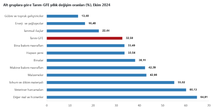 Tarımsal girdi fiyat endeksi (Tarım-GFE) yıllık yüzde 32,59 arttı, aylık yüzde 2,75 arttı