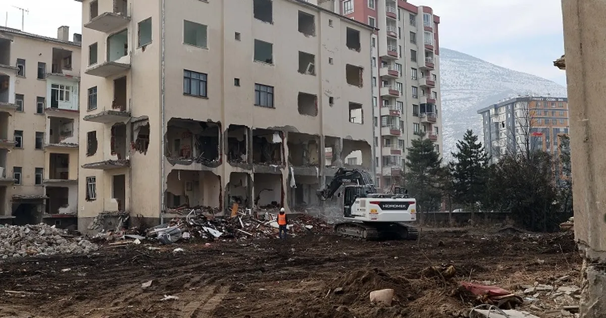 İş makineleri yardımıyla yürütülen yıkım faaliyetinde bloklardaki kritik noktalar yıkıldıktan sonra iş makinelerinin klaksonlarından çıkan ses titreşimleriyle yıkım tamamlanıyor.