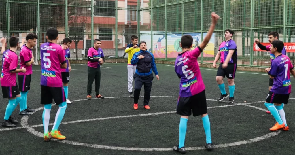 BURSA (İGFA) – Antremanı ziyaret eden Gemlik Belediye Başkanı Şükrü Deviren ve Gemlik Belediyespor Kulübü Başkanı Mustafa Duran, gençlerle tek tek selamlaşarak, onları motive etti. Başkan Deviren, antrenman sonunda yaptığı konuşmada, sporun birleştirici gücüne dikkat çekti. Genç yaşlardan itibaren futbol ve diğer spor dallarıyla ilgilendiğini belirten Başkan Deviren, “Toplumsal alanda huzuru sağlayan şeylerin başında sanat ve spor geliyor. Belediyespor Kulübümüz aracılığıyla her geçen gün daha fazla gencimizi sporla buluşturuyoruz. Bugün gerçekleştirdiğimiz program gibi özel çalışmalarımızda da sporu toplumun her alanına taşımaya gayret ediyoruz. Bu güzel çalışmada emeği geçen herkesi kutluyorum” dedi.