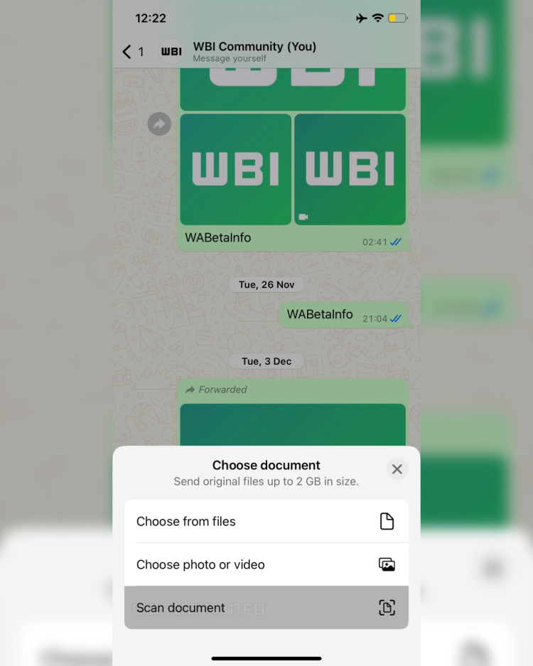WhatsApp is rolling out a feature to scan documents with the camera, and it’s available to some users!https://t.co/kpGQL8LJkY pic.twitter.com/zhIk8ABn0Q