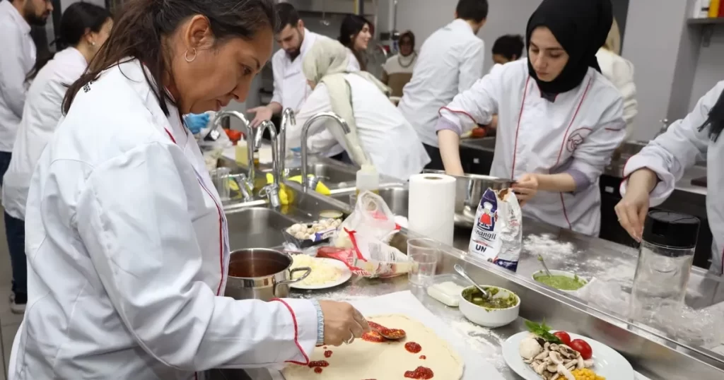 KOCAELİ (İGFA) – Kocaeli Büyükşehir Belediyesi Beyaz Kalpler Eğitim ve Gelişim Merkezi’nde aşçı yardımcılığı eğitimi alan öğrenciler, TÜBİTAK personeline pizza yapımını adım adım gösterdi. Etkinlik hem verimli hem de oldukça keyifli geçti. Kocaeli’nde gençlere yönelik pek çok yatırımı hayata geçiren Kocaeli Büyükşehir Belediyesi, kentin geleceğini onlarla birlikte şekillendiriyor. Bu kapsamda Büyükşehir’in uyguladığı projelerden biri de, gençlerin geleceğe ışık tutmasını sağlıyor. Büyükşehir Belediyesi tarafından hizmete alınan Beyaz Kalpler Eğitim ve Gelişim Merkezi, 14-18 yaş arasında eğitim hayatına ara vermek zorunda kalan ve dezavantajlı grupta yer alan gençleri yeniden eğitim ve sosyal hayata kazandırmayı amaçlıyor.