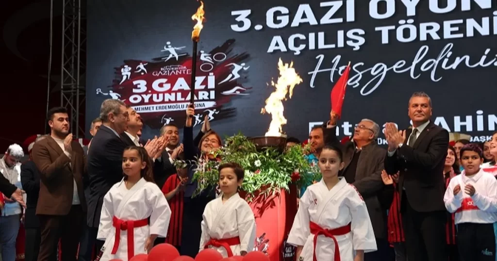 Programın sonunda oyuncular, sporcular ve protokol sahnede 3’üncü Gazi Oyunları’nın başlangıç meşalesini yaktı. Şehrin genelinde 9 ilçede sürecek müsabakaların startı meşale töreniyle başladı.