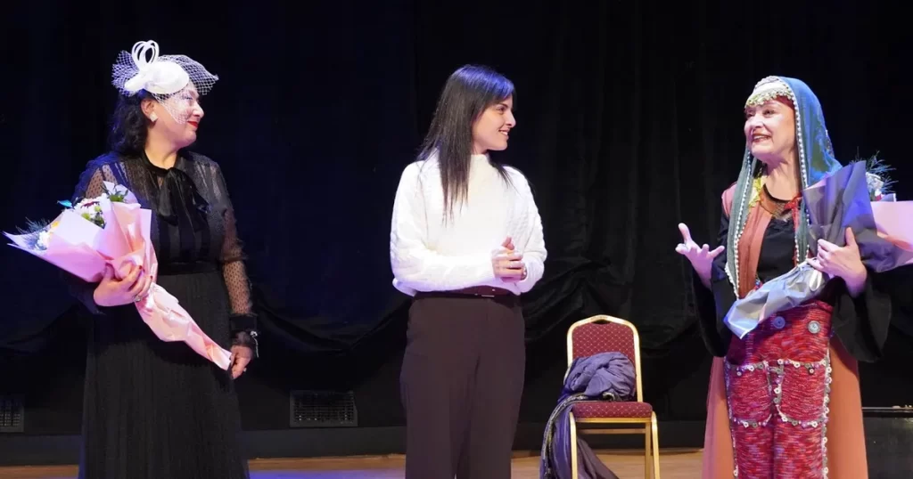 ANKARA (İGFA) – Keçiören Belediyesi, Yazar Güngör Dilmen’in kaleme aldığı, oyunculuğunu ve yönetmenliğini Nermin Uğur’un yaptığı “Ben Anadolu” isimli tiyatro oyununa ev sahipliği yaptı. Tarihin kahraman kadınlarını günümüze taşıyan oyun Necip Fazıl Kısakürek Tiyatro Salonu’nda sahnelendi. Komedi-dram türünden tek perdelik oyunda, tarih boyunca Anadolu’da yaşayan ve tarihe yön veren kahraman Anadolu kadınları anlatıldı. Oyuncu ve yönetmen Nermin Uğur’un anlatımıyla vücut bulan Anadolu kadınlarının kahramanlık öyküleri, ilgiyle takip edilirken izleyicilerden büyük alkış aldı.