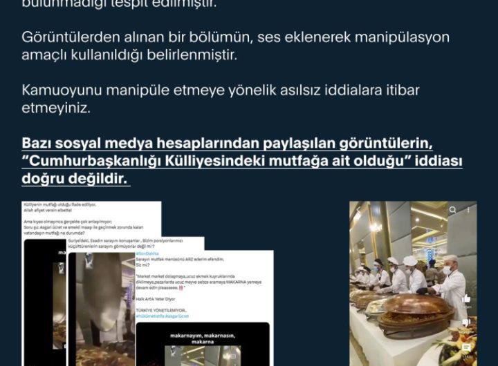 ANKARA (İGFA) – Cumhurbaşkanlığı Külliyesindeki mutfağa ait olduğu iddia edilen görüntülere ilişkin açıklama İletişim Başkanlığı’ndan geldi. Söz...