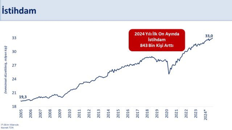 Ekonomide yeniden dengelenmenin gerçekleştiğini belirterek, “Reel büyüme tahminlerimizin altında kalacak olsa da dolar cinsinden milli gelir 1,3 trilyon dolara ulaşacak. İşsizlik oranı tek haneli seyrini sürdürdü, öngörülerimizden daha olumlu gerçekleşecek” diyerek 2024 yılında ‘reel ekonomi’ olduğunu özetledi.