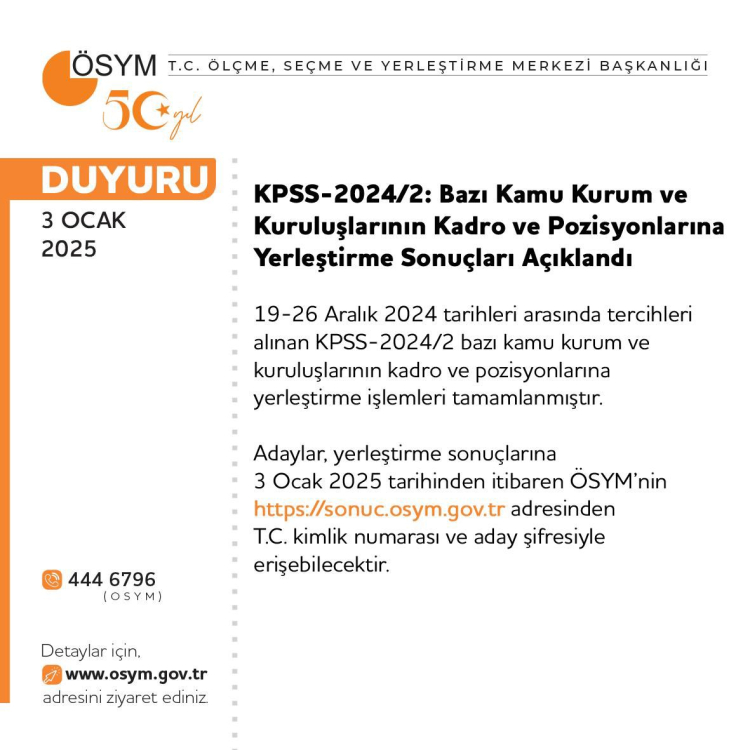 ÖSYM, bazı kamu kurum ve kuruluşlarının kadro ve pozisyonlarına yerleştirme sonuçlarının açıklandığını duyurdu.