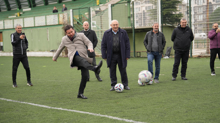 BURSA (İGFA) – Spor ve sporcu dostu Osmangazi Belediyesi’nin Başkanı Erkan Aydın, Hüdavendigar Dikkaldırım Osmangazi Spor Kulübü yöneticileri ve sporcular ile bir araya geldi. Kentte amatör sporcuların ve spor kulüplerinin en güçlü destekçisi olarak her zaman yanlarında olan Başkan Aydın’ın ziyareti, antrenman yapan genç sporcular için büyük moral oldu. Genç sporcularla karşılıklı penaltı atışı yapan Başkan Aydın, ziyaret sonunda sporcularla hatıra fotoğrafı çektirdi. Başkan Aydın, Osmangazi’nin önemli mahallelerinden olan Hüdavendigar ve Dikkaldırım’da, gençlere sahip çıkılması noktasında önemli görevler yapan kulüp yöneticilerine de teşekkür etti.