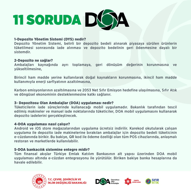 Çevre, Şehircilik ve İklim Değişikliği Bakanlığı, Depozito Saha Yönetimi Sistemi ile ilgili merak edilen soruları ve yanıtları şöyle: