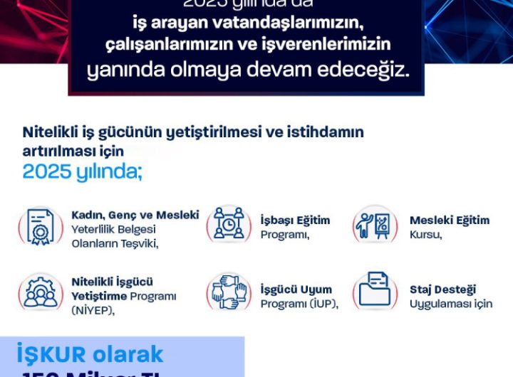 Türkiye İş Kurumu (İŞKUR) tarafından 2025 yılında hayata geçirilecek program ve faaliyetler için 150 milyar TL’lik kaynak...