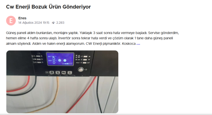Antalya’da faaliyet gösteren enerji sektörünün temsilcilerinden CW Enerji hakkındaki şikayetler giderek artıyor. Müşterilerin firmaya yönelik memnuniyetsizlikleri had...