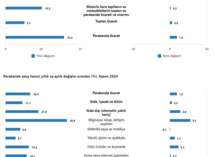 TÜİK’in açıkladığı Kasım ayı verilerine göre yıllık bazda ticaret satış hacmi yüzde 8,7, perakende satış hacmi ise...