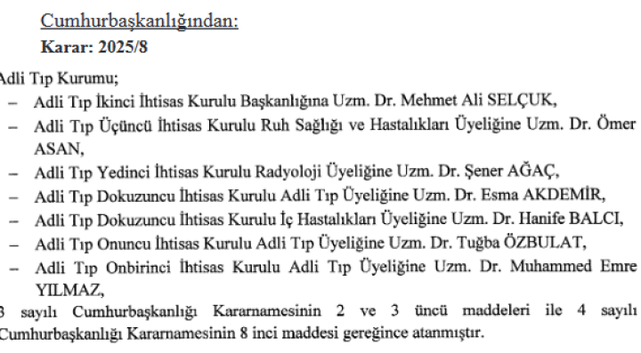 Cumhurbaşkanı Erdoğan imzasıyla yayımlanan kararlara göre, Türkiye Adalet Akademisi Başkanı Muhittin Özdemir görevden alınırken, yerine İstanbul Çağlayan...