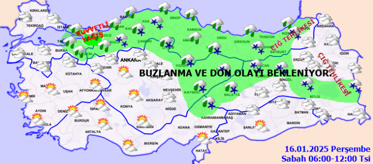 Öte yandan güne ilişkin meteorolojik uyarılarda ise kuvvetli yağış ile buzlanma ve çığ tehlikesi uyarısı geldi.