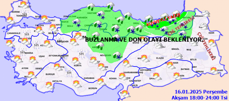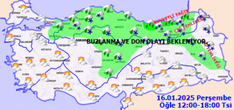 ANKARA (İGFA) – Meteoroloji Genel Müdürlüğü 16 Ocak Perşembe gününe ilişkin hava tahmin raporunu yayımladı.