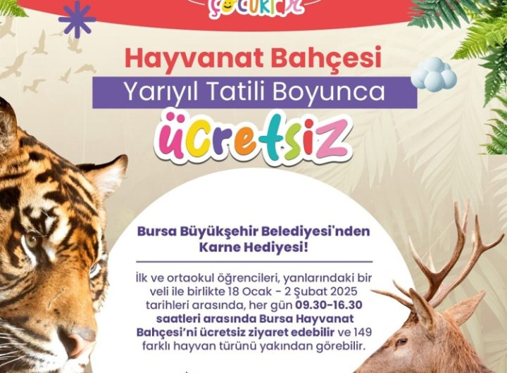 Bursa Büyükşehir Belediyesi, 2024-2025 eğitim döneminin ilk yarısını tamamlayıp, sömestir tatiline giren tüm öğrencilere ücretsiz hayvanat bahçesi...