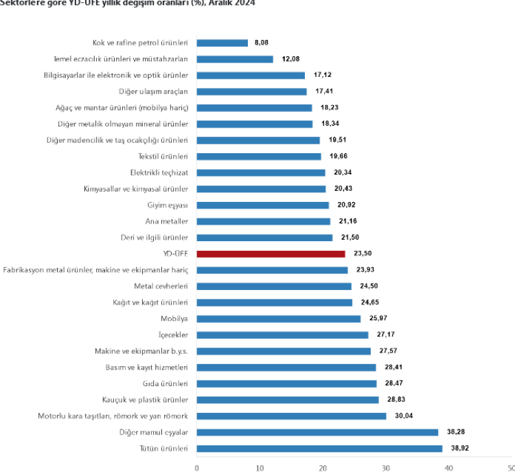 YD-ÜFE İMALAT ÜRÜNLERİNDE YILLIK YÜZDE 23,53 ARTTI