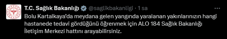 Sağlık Bakanlığı, Bolu’daki otel yangınında yaralananların yakınlarının ALO 184’ten bilgi alabileceğini duyurdu.