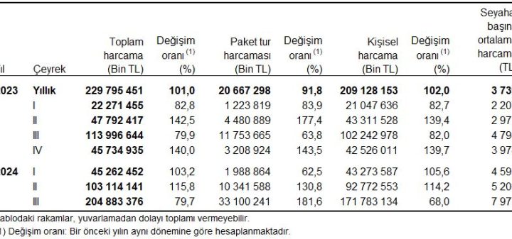 Hanehalkı Yurtiçi Turizm’de üçüncü çeyrek raporu yayımlandı. Yurt içinde ikamet eden 20 milyon 453 bin kişi seyahate...