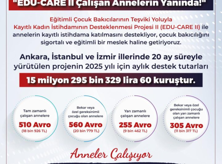 Çalışma ve Sosyal Güvenlik Bakanlığı, Ankara, İstanbul ve İzmir’de yürütülen EDU-CARE II projesi kapsamında çalışan annelere bu...