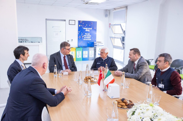 Başkan Tugay, “Kadın personel sayısının fazla olması çok güzel. Enerjisi yüksek bir fabrika yaratılmış. Atatürk Odası için ayrıca teşekkür ediyorum. Bu Türkiye’ye saygının göstergesidir. İzmir tam bir Akdeniz şehri. Arada kurulacak köprüler anlamlı. Bizler İtalya’yı çok severiz” ifadelerini kullandı.