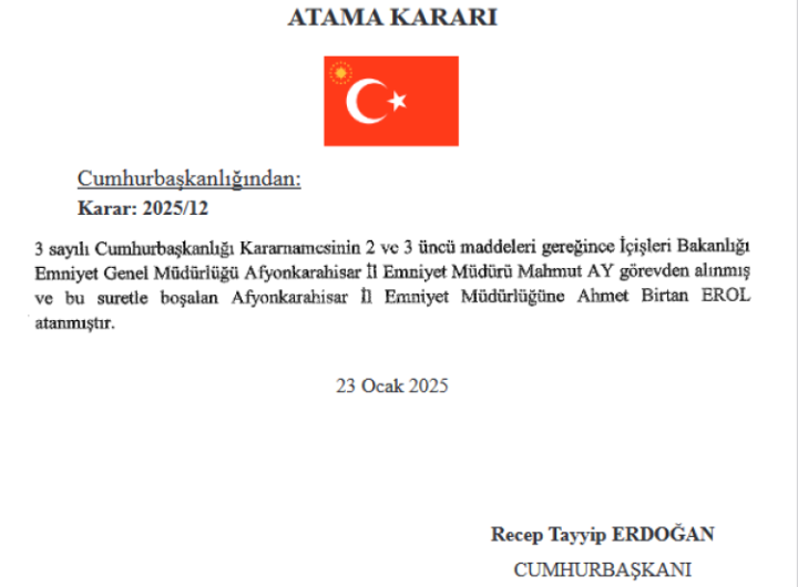 Afyonkarahisar İl Emniyet Müdürü Mahmut Ay görevden alındı, yerine Ahmet Birtan Erol getirildi. ANKARA (İGFA) – Afyonkarahisar...