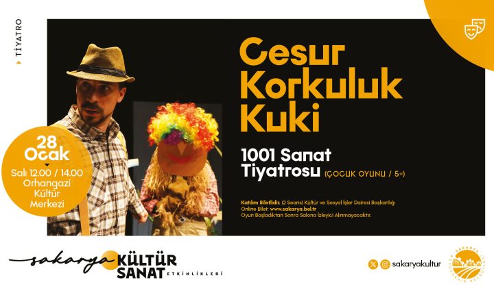 Sakarya Büyükşehir Belediyesi Ocak Ayı Kültür Takvimi kapsamında, 28 Ocak Salı günü Orhangazi Kültür Merkezi’nde “Cesur Korkuluk...