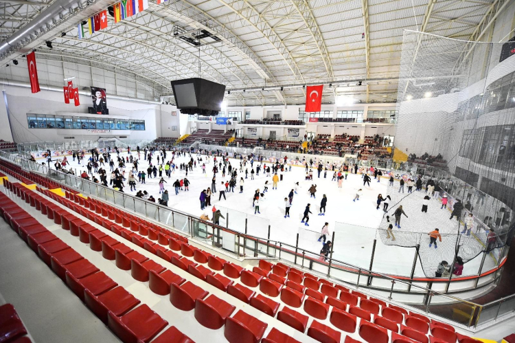 İzmir Büyükşehir Belediyesi, Bornova’daki Âşık Veysel Rekreasyon Alanı’nda yer alan Buz Sporları Salonu’ndaki halk seanslarını yarıyıl tatili boyunca ilkokul ve ortaokul öğrencilerine ücretsiz yaptı. “Karneni al gel” sloganıyla düzenlenen etkinlik kapsamında İzmirli minikler karne hediyesi olarak buz pateni yaparak tatil coşkusunu doyasıya yaşadı. Buz pisti öğrencilerle doldu taştı.